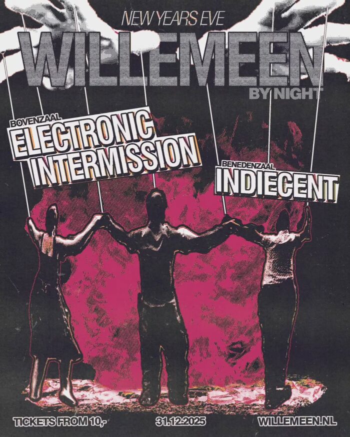 Willemeens nachtkanaal Willemeen by night presenteert op NYE een clubnacht met 2 concepten die het afgelopen jaar de Arnhemse nachten kleur hebben gegeven: Electronic Intermission en Indiecent!